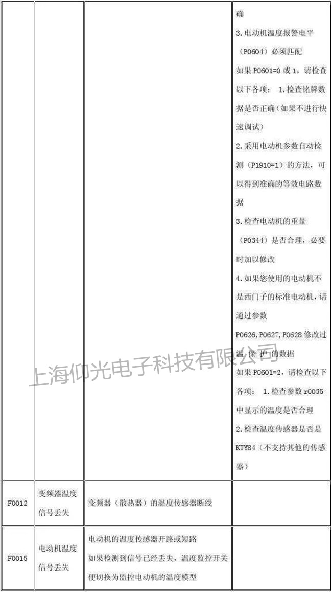 西門子MM440變頻器常見報(bào)警代碼圖如下: