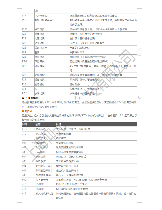 這些錯誤信息可通過ASCII命令取消,除非執行復位。當這些錯誤顯現時,復位按鈕或I∕O功能復位被使用,消除錯誤的命令都會被執行