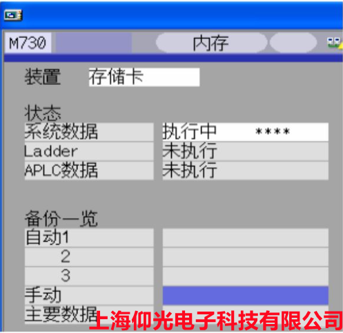 4.選擇完裝置后,按下“備份”→“INPUT”→“Y”,此時(shí)屏幕顯示“備份執(zhí)行中”。