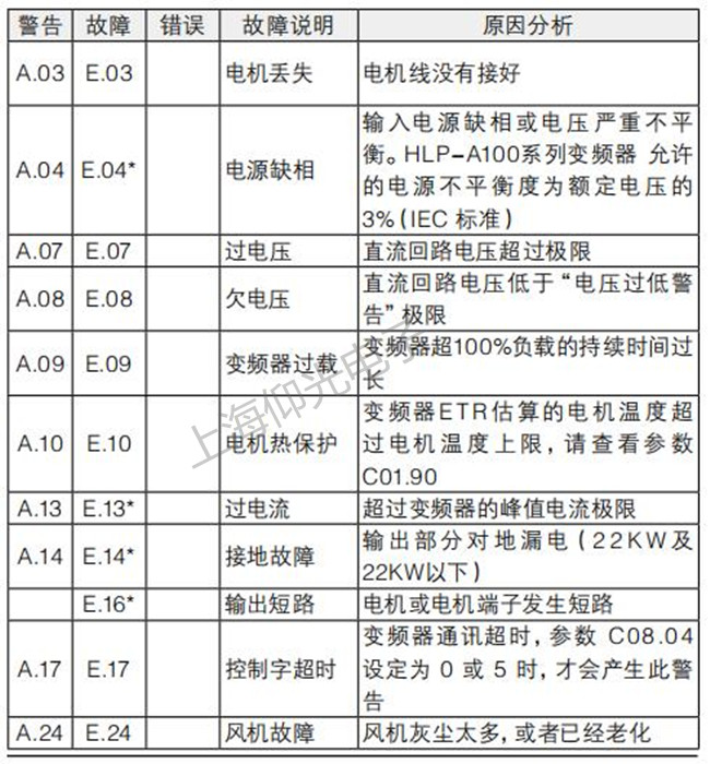 海利普變頻器維修故障代碼一覽表: