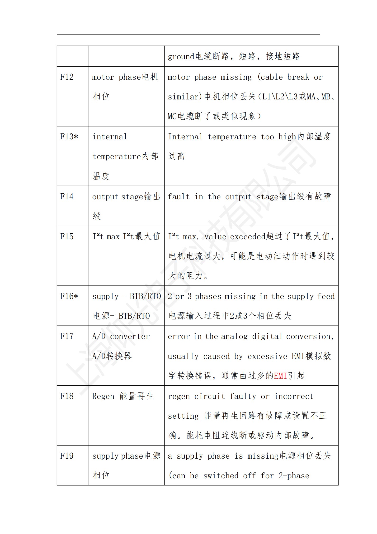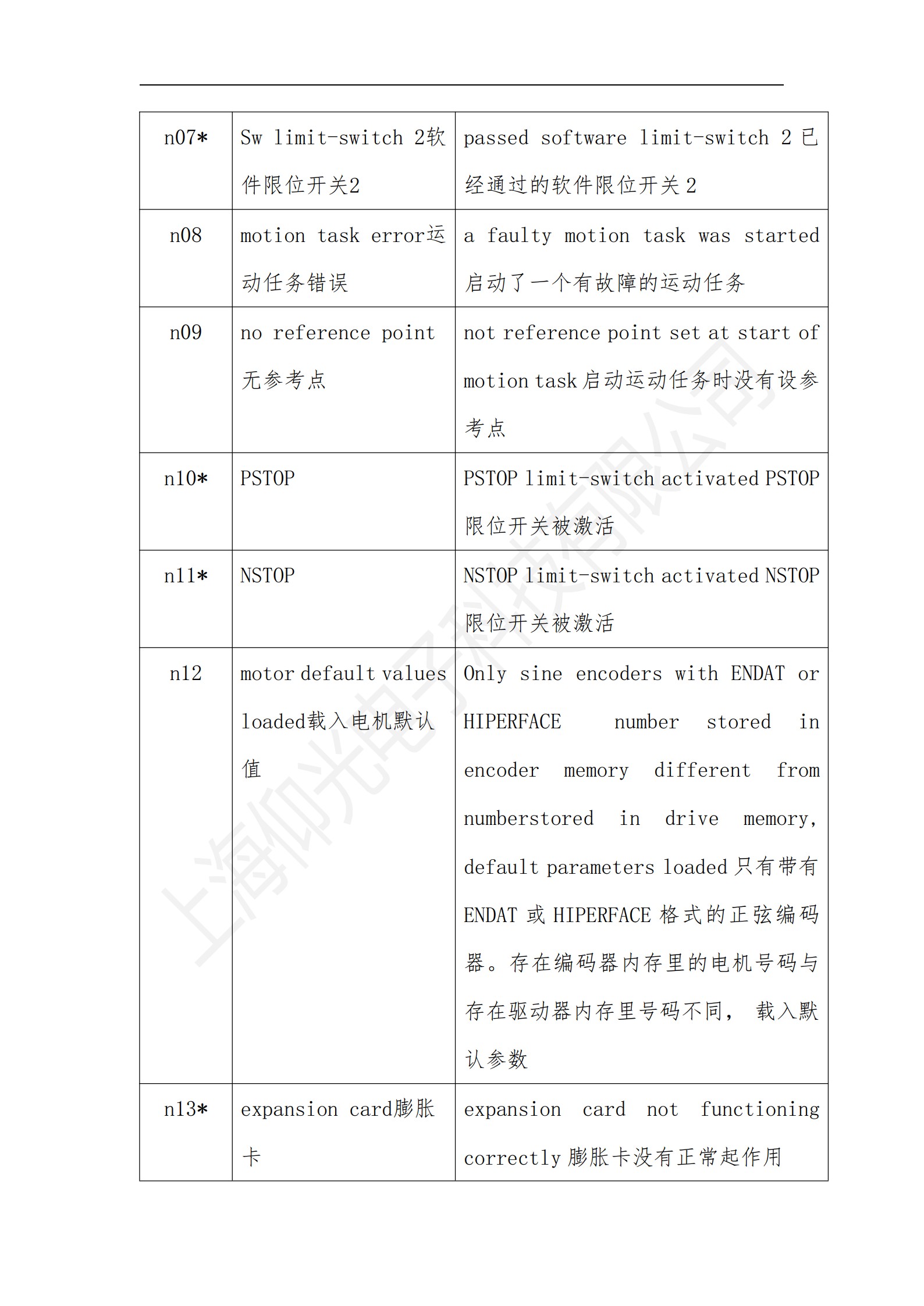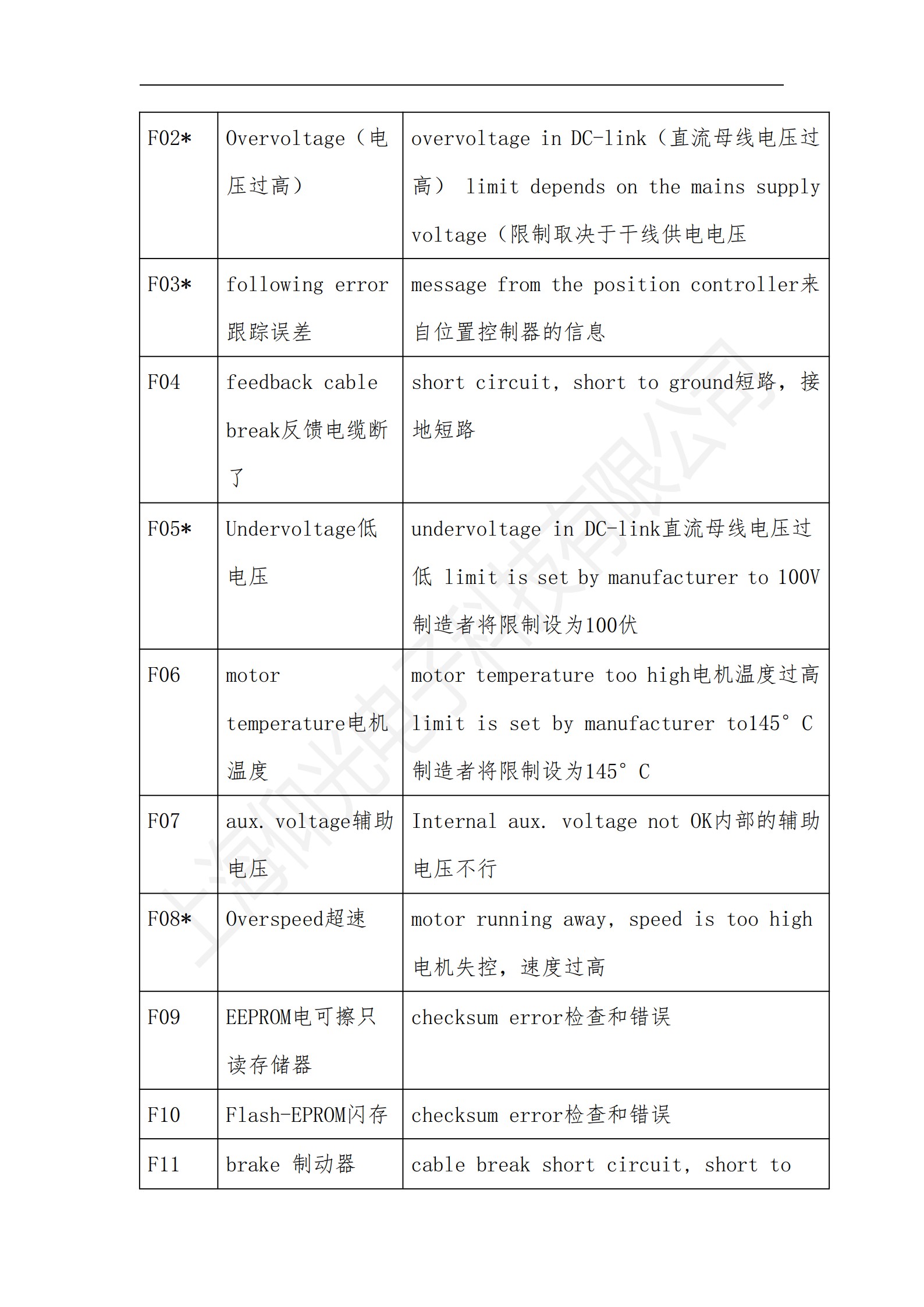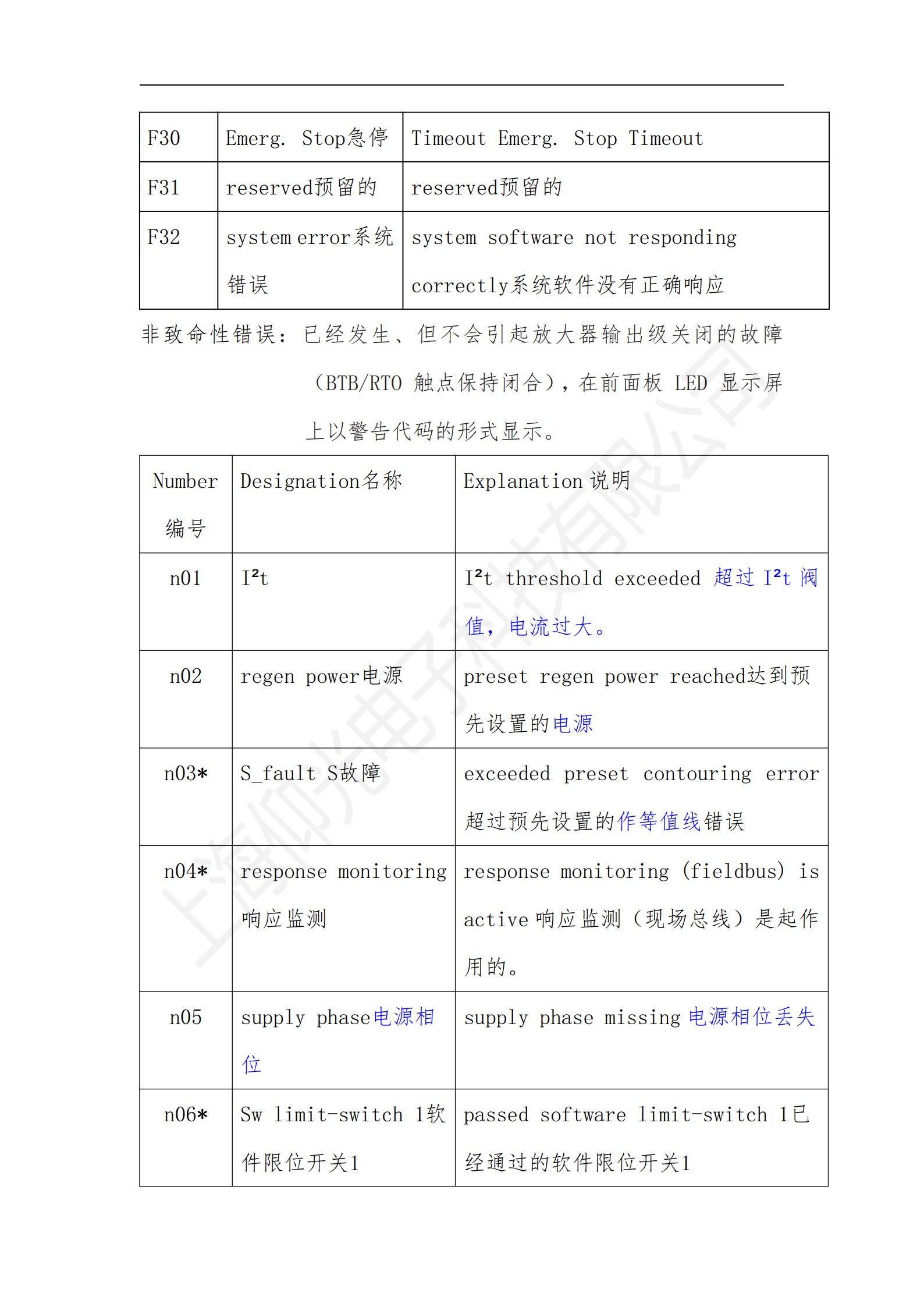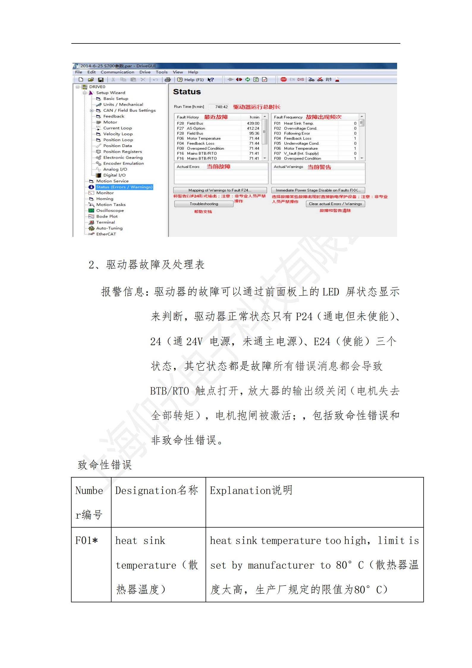 科爾摩根S700系列驅動器操作使用說明書,科爾摩根S700系列驅動器報警故障代碼解釋: