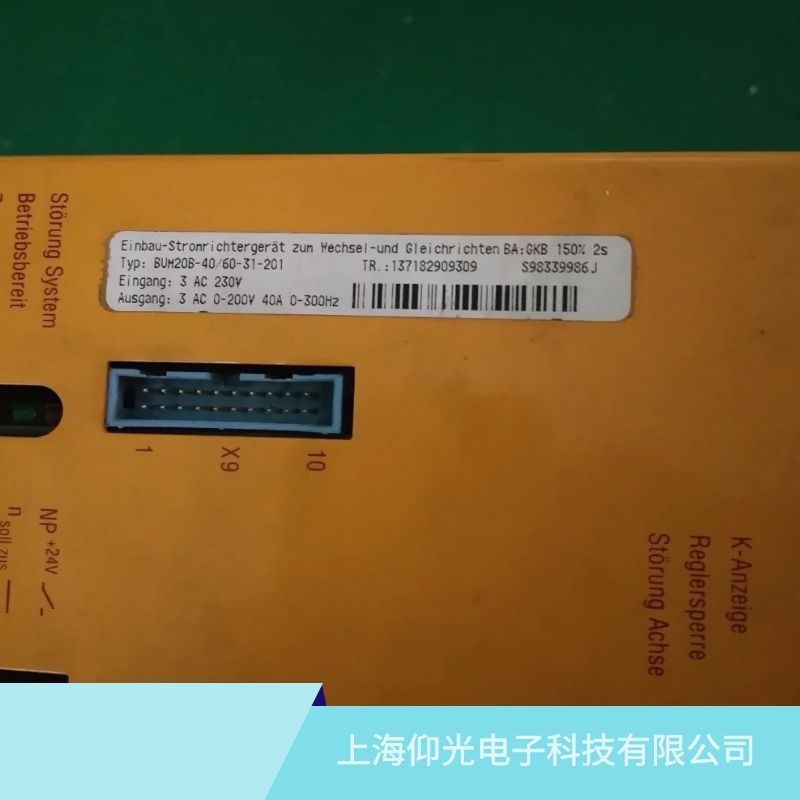 上海仰光電子科技有限公司成立于2011年,是一家專(zhuān)業(yè)從事工業(yè)自動(dòng)化設(shè)備維修、維護(hù)及電氣系統(tǒng)維修改造的高科技公司。主要針對(duì)西門(mén)子(SIEMENS) ABB維修、包米勒維修,力士樂(lè)維修,發(fā)那科維修,貝加萊維修,AB維修,科爾摩根維修,倍福維修,富士維修,安川維修,三菱維修,海德漢維修,穆格維修,發(fā)格維修,普洛菲斯,路斯特維修,倫茨維修,斯德博維修,寶德維修,NUM維修,SEW維修,施耐德(Schneider)等品牌的驅(qū)動(dòng)器,變頻器、伺服電機(jī)、直流調(diào)速器、軟啟動(dòng)器、工控機(jī)、PLC、觸摸屏、數(shù)控系統(tǒng)、單片機(jī)、電路板等各種進(jìn)口工業(yè)儀器設(shè)備,服務(wù)中心配備了百萬(wàn)備品備件以及完備的診斷檢測(cè)儀器和軟件診斷技術(shù),擁有一支技術(shù)精湛、經(jīng)驗(yàn)豐富的技術(shù)團(tuán)隊(duì)。上海仰光電子科技有限公司維修免費(fèi)全國(guó),提供免費(fèi)檢測(cè),免費(fèi)咨詢(xún),同一故障六個(gè)月質(zhì)保,修不好不收費(fèi)用,如有任何故障可隨時(shí)聯(lián)系我們,上海仰光電子科技有限公司工程部溫馨提示:如果設(shè)備出現(xiàn)報(bào)警或者損壞,不是專(zhuān)業(yè)技術(shù)人員請(qǐng)勿私自拆卸,以防帶來(lái)安全隱患以及給設(shè)備造成二次傷害.上海仰光電子-您身邊的設(shè)備維修維護(hù)專(zhuān)員。