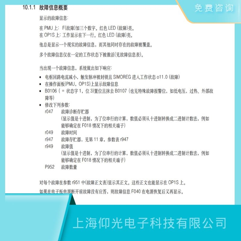 上海仰光電子科技有限公司成立于2011年,是一家專業從事工業自動化設備維修、維護及電氣系統維修改造的高科技公司。主要針對西門子(SIEMENS) ABB維修、包米勒維修,力士樂維修,發那科維修,貝加萊維修,AB維修,科爾摩根維修,倍福維修,富士維修,安川維修,三菱維修,海德漢維修,穆格維修,發格維修,普洛菲斯,路斯特維修,倫茨維修,斯德博維修,寶德維修,NUM維修,SEW維修,施耐德(Schneider)等品牌的驅動器,變頻器、伺服電機、直流調速器、軟啟動器、工控機、PLC、觸摸屏、數控系統、單片機、電路板等各種進口工業儀器設備,服務中心配備了百萬備品備件以及完備的診斷檢測儀器和軟件診斷技術,擁有一支技術精湛、經驗豐富的技術團隊。上海仰光電子科技有限公司維修免費全國,提供免費檢測,免費咨詢,同一故障六個月質保,修不好不收費用,如有任何故障可隨時聯系我們,上海仰光電子科技有限公司工程部溫馨提示:如果設備出現報警或者損壞,不是專業技術人員請勿私自拆卸,以防帶來安全隱患以及給設備造成二次傷害.上海仰光電子-您身邊的設備維修維護專員。