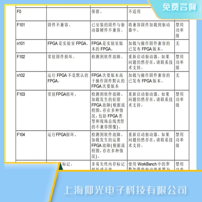 補救方法:加載發(fā)生的駐留FPGA 故障( 根據(jù)流程圖,存在多種情況,包括 FPGA 類型和現(xiàn)場總線類型的不兼容圖像) 。重新啟動驅(qū)動器。如果問題仍然存在請聯(lián)系技術支持。