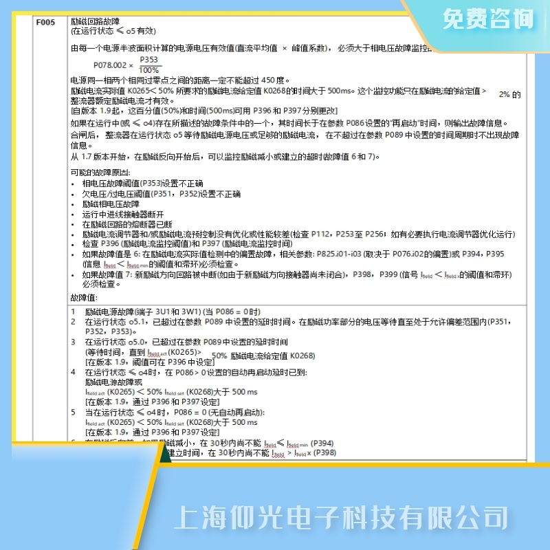 上海西門子直流調(diào)速器維修電話-仰光電子維修公司。免費(fèi)檢測,免費(fèi)咨詢,24小時(shí)熱線電話:13817011982,上海西門子6RA系列直流調(diào)速器報(bào)F005維修,上海西門子6RA系列直流調(diào)速器報(bào)勵(lì)磁回路故障維修: