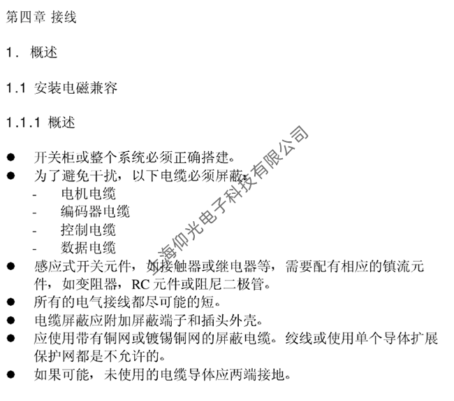 應使用帶有銅網或鍍錫銅網的屏蔽電纜。絞線或使用單個導體擴展保護網都是不允許的。