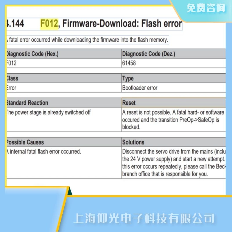 beckhoff伺服控制器報(bào)F012維修解析: