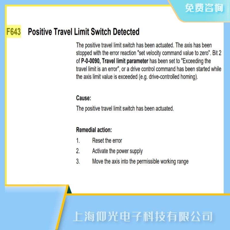 關(guān)于上海力士樂(lè)伺服驅(qū)動(dòng)器報(bào)代碼F643檢測(cè)到正行程限位開關(guān)故障維修價(jià)格的技術(shù)問(wèn)題上海仰光電子提供24小時(shí)免費(fèi)咨詢服務(wù).
