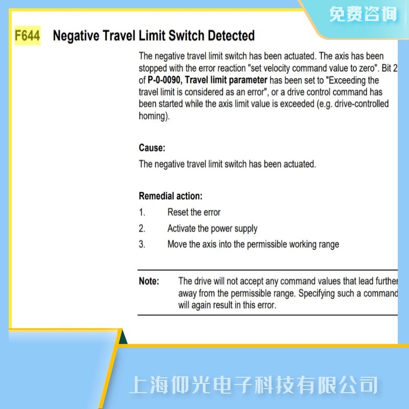 無論任何品牌的工控產品由于環境惡劣,操作不當,使用年限等原因,難免會出現故障,最重要的是及時查找出原因,對應解決故障,及早恢復正常使用上海仰光面向全國,支持順豐到付,擁有全套測試平臺,軟硬件結合,帶載運行,維修速度快,價格低,免費檢測,修好測試后發出,修不好不收費用,免費咨詢:13817011982張工.關于博世Rexroth力士樂伺服器功率模塊報F644檢測到負行程限位開關故障維修的技術問題上海仰光電子提供24小時免費咨詢服務.