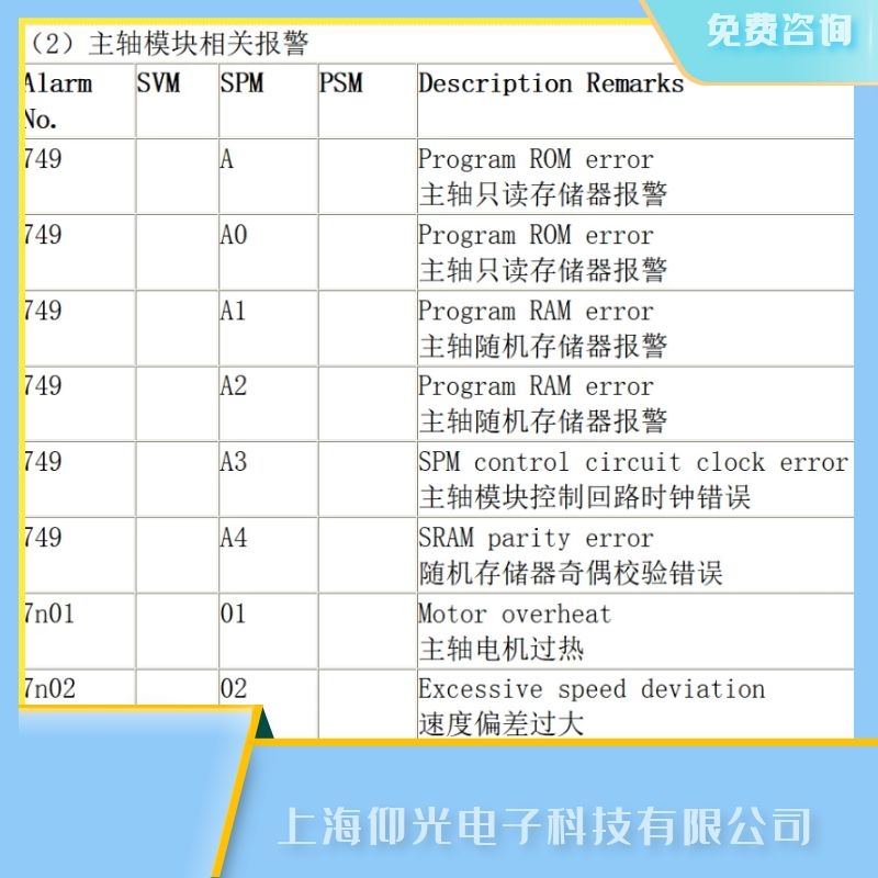 上海仰光發那科交流模擬主軸驅動單元常見故障:發那科數控系統維修,過熱報警維修,速度誤差過大報警維修,,直流側保險燒斷報警維修,缺相,控制電源保險燒斷維修,過速度報警維修,+24V高電壓,單元過載維修,+15V低電壓報警維修,直流側高電壓報警維修,直流側異常電流維修,CPU報警維修,ROM報警維修,控制板無顯示維修,主軸不轉維修,無任何報警顯示維修,發那科伺服驅動器維修,發那科伺服放大器維修,伺服報警維修代碼,放大器報警維修代碼,控制器維修代碼,發那科伺服控制器維修常見的故障有:上電無顯示維修、有顯示無輸出維修、過電流維修、過電壓維修、欠電壓維修、過熱維修、過載維修、過速維修、缺相維修、抖動維修、編碼器異常維修、模塊損壞維修、接地故障維修、編碼器報警維修、模塊損壞維修、參數錯誤維修,主板維修,電源板維修,控制板維修,電源輸入故障維修,驅動板維修,